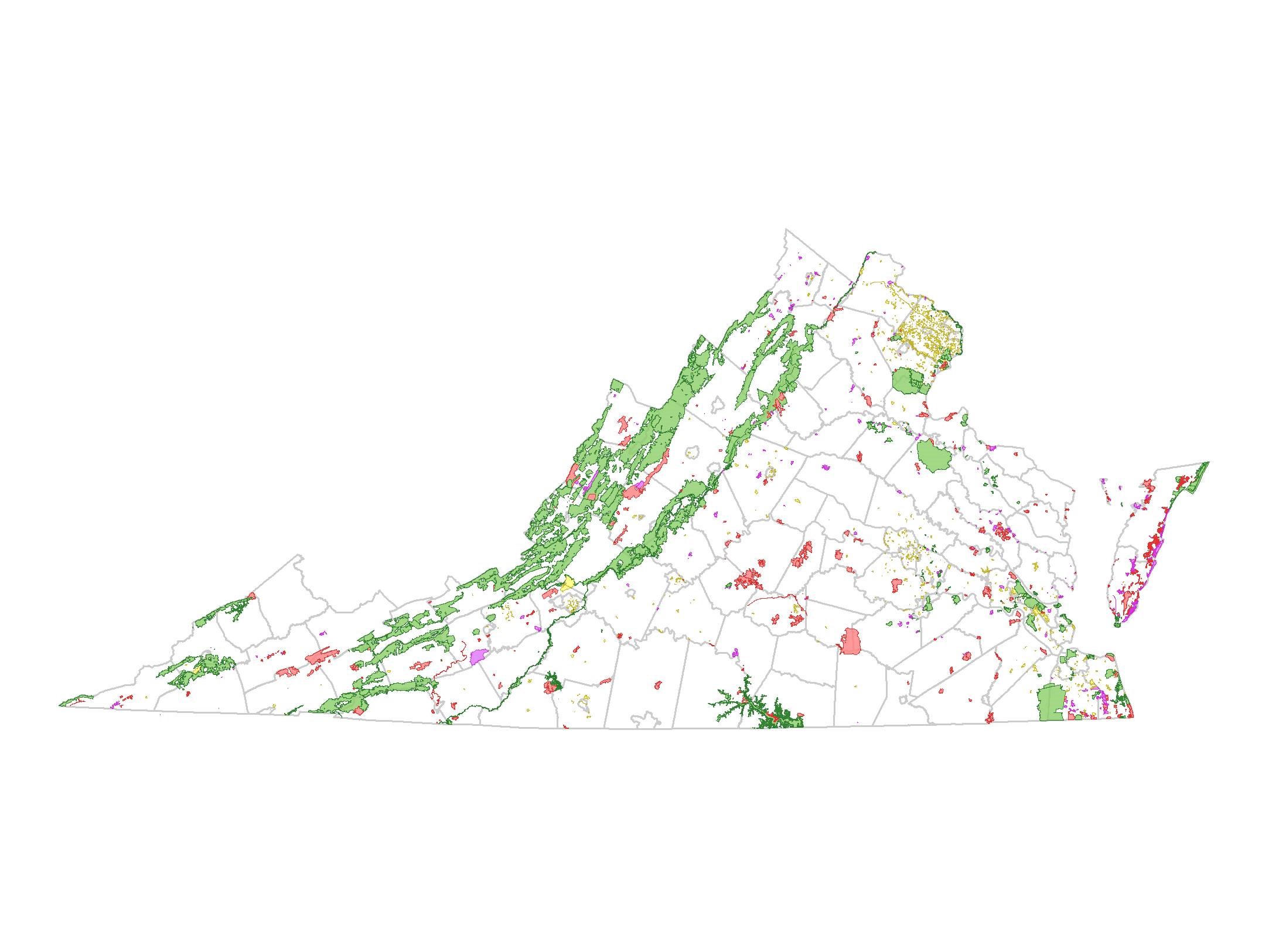 Description: This dataset contains the boundaries for lands of conservation and recreational interest in Virginia. The Conservation Lands Database is constantly being edited and updated. Historic easements are held by the Virginia Board of Historic Resources and administered by the Virginia department of Historic Resources. Data is released to the public quarterly and posted to the download section of the website: http://www.dcr.virginia.gov/natural_heritage/cldownload.shtml